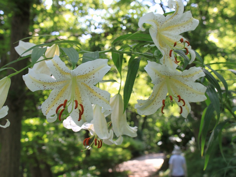 秦野市内では弘法山公園や渋沢丘陵などでヤマユリが咲いています。ハイキングコースの木陰で咲く姿は、とても印象的です。