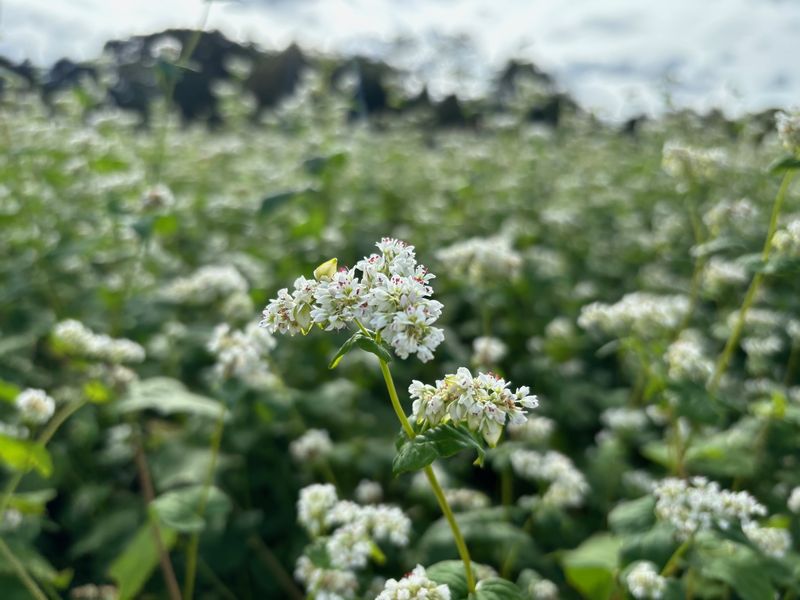北小学校近くの畑でソバの花が見ごろを迎えています